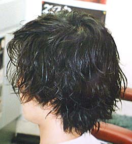 | 前から見た感じです。ミックスパーマを使った、今、流行りのスタイルです。全体に柔らかさを出すだけのかかりすぎない不規則なパーマと、軽さを出す事を中心にしたカットを入れます。横から見た感じです。これだけのパーマとカットをしておくと、普段は、写真のようにおしゃれな感じが表現できます。また、会社や学校がうるさい場合がありますよね?そんな時は出掛ける前が勝負!後ろから見た感じです。ブラシを入れてしまうと、ほとんどパーマがかかっているのがわからない自然なスタイルになります。真面目な場の時と遊ぶ時をきちんと使い分けられるスタイルです。 |