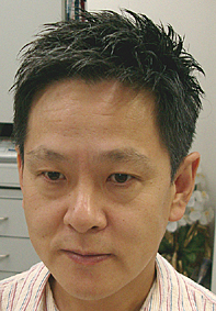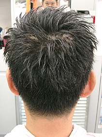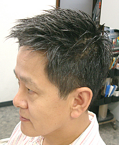 さあ、50才代前半の方の登場です!白髪が30%程で髪質が硬く、ほぼストレート毛。年代的に髪型もしっかりと守りに入ってしまっている年代です。このお客様もそうした方の一人でした。しかし、毛先を徹底的に軽くし、少し立ち上げるようにし、白髪を黒く染めてしまわずに、ぼかしてグレーにしてしまいます。すると、白髪が黒髪とマッチし、とても60才を間近に控えているとは思えないグッっと若々しい感じになります。実はこのような方は多く、現実としてはお客様ご自身が若くなる事を拒絶している場合がほとんどです。ぜひ、勇気を出して甦る若さを導き出しましょう! |