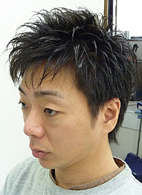 何度も出て頂いている毛量がすごく多く、固い髪の方なのですが、今回は転職面接には寝かせても大丈夫で、オフの時にはきちんと立たせられた上、めちゃくちゃ軽くしたいという事で、全体に本当にゆるいボディパーマを施し、徹底的に毛束を意識して毛量調節を行います。耳周りはキッチリしているような感じを醸し出しながら、微妙なカットして何日か経ったような自然さを丁寧にカットして行きます。当店は水をつけてこのような状態がきちんとセットできる事を確認しますので安心です。