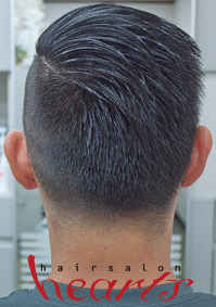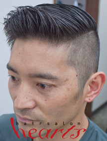 いわゆる1:9パートを主軸にサイドを大胆に削り込んだアシンメトリー(左右非対称)なスタイルです。反対側の刈上はナチュラル感を出し、上はクラッシックスタイルながらも、今風な軽やかさを取り入れ、バックは左右が融合するように刈上の色合いを整えます。