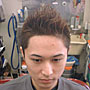 ツイストリーゼントです。ツンツンと立たせた中にツイストを入れ、バッドテイストを合わせた大人っぽい感じが表現できます。 |