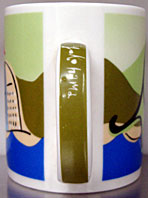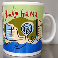 2003.6月に初めて手に入れた地域限定マグの「横浜マグ」。まだこの時はコレクト意欲は沸いておらず。ランドマークタワーに観覧車、インターコンチネンタルホテル、ベイブリッジと「みなとみらい横浜」の象徴を羅列!ベイブリッジの目玉が気になる・・(笑)