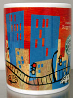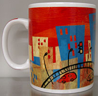 2003.9月にHさんのお陰で手に入れた「六本木ヒルズマグ」。いわゆる首都高を含めて「東京=都会」という六本木の街のデザインです。夕日を表しているバック色は都会の寂しさを妙に演出しているかのようで素晴らしいバランス。これには、一見目玉がないのだがライトが目玉な様な気も・・?