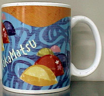 2004.1月に、Hさんのお陰で手に入れた「高松限定マグ」!やられました!いきなり歴史人物(笑)扇の的を射る「那須与一」が入っています。もしかして、後ろの柄はうどん???(笑)しかし、良く見なければどれもわからないというちょっと悲しいマグ・・・(笑)