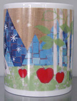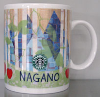 Jさんから頂いた「長野限定マグ」!雪の中、白樺に囲まれた林の中に、長野の県鳥の冬の白いライチョウがたたずんでおり、長野の名産のリンゴがの赤がいいアクセントという素晴らしいバランスのマグ。シリーズの中では1、2位を争うのではないでしょうか?