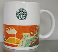 お客様から3月に頂いた「静岡マグ」茶畑とみかん畑と富士山という静岡の名物がきっちり表現されている。なぜか、千葉マグと同じくスターバックスのシンボルの女神像<サイレン>が一番目立っている。千葉マグの時も思ったのですが、いらないです・・<サイレン>・・(^-^;