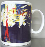 新しい方の東京マグです。【21st 東京マグ】という題名があるそうで・・。ひとことで言い表すと、【眠らぬ街・東京】といった所でしょうかね。夜景の東京タワーの赤が印象的で、ハッキリとした描写でなく、手ブレさせたような表現にする事によって【眠らぬ街・東京】を幻想的にうまく描写できていますね。持ち手にも東京タワーが描かれていますよん!
