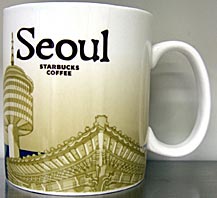 友人に買ってきてもらった韓国ソウルマグ。前回のは良くわからないなんでもない家の絵柄だったが、今回は南山公園の山頂に2006年にリニューアルされたソウル全体を一望できるシンボル展望スポット【Nソウルタワー(南山タワー)】とソウルの街並みのシルエット的な手法で描かれています。