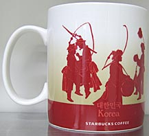 友人に買ってきてもらった韓国マグ。家にかけると福が来ると言われてる、韓国の安東河回村の仮面劇で使われる【ハフェタル(河回(ハフェ)村に伝わる木製の河回仮面)】というお面と韓国舞踊?のシルエットが描かれています。