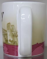 友人に買ってきてもらったシドニーマグ。シドニー市街地とノースシドニーを結ぶ橋【シドニー・ハーバー・ブリッジ】が描かれています。橋の形が弓のように反っているので、アーチ橋(正確には<鋼タイドアーチ橋>というらしい)と呼ばれるそうです。裏面はシドニーのボンダイビーチ。オーストラリアで最も有名なビーチであり、1キロにわたる黄金の砂浜・初代imacの青色「ボンダイブルー」はこのボンダイビーチの青色から来てるのも有名な話です。ならブルーで描けばそれも表現できたのに残念な気もしますね・・。