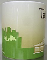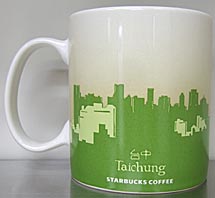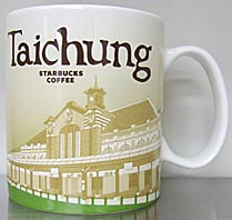 友人に買ってきてもらった台中マグ。台中駅がメインイラストで描かれており、裏面は台中の街並みのシルエット的手法で描かれています。