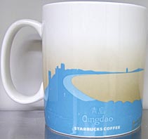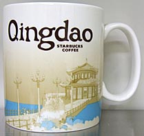 友人に買ってきてもらった青島マグ。青島ビールのラベルに印刷されているシンボルマークで、長い長い桟橋の先にあって、眺めは青島の美景のひとつと言われる八角形の楼閣【回瀾閣(カイランカク)】が描かれています。裏面は海岸線が長く、青島で最も規模の大きい【第一海水浴場】が描かれています。