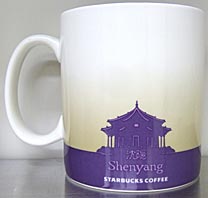 友人に買ってきてもらった沈陽マグ。表面は、世界遺産でもある瀋陽故宮の屋根にある【意匠】が描かれている。裏面は、世界遺産でもある瀋陽故宮の中のひとつ、ヌルハチが建てたモンゴルの移動式住居パオを模して造ったため八角形になったと言われている瀋陽故宮の【大政殿(現在では博物館(故宮博物院)として公開されている)】が描かれている。