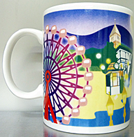 友人に買ってきてもらった神戸限定マグのセカンドです。1stは横浜、大阪のデザイナーさんのアーティスティックバージョンでしたが、今回は名所を散りばめたノスタルジックな神戸・・。神戸全体の夜景がイメージされ、神戸ポートタワー、新神戸ロープウェー、異人館、神戸モザイクガーデンの観覧車、クルージング船・・とこれでもかとある意味詰め込んだ・・(笑)でも、日本のマグは取っ手まで細かい描写がうれしいね!