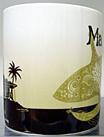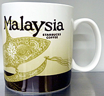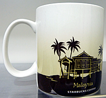 友人に買ってきてもらったマレーシア限定マグ。表面はマレーシアの伝統的な遊びのひとつ【凧揚げ】・・その最も親しまれている代表的な形はである「月型(ワウ・ブラン)」の代表的な凧が描かれている。裏面は高床式【マレーハウス】が描かれている(もし有名な所だったら知っている方教えて下されば幸いです・・m(._.)m)