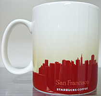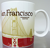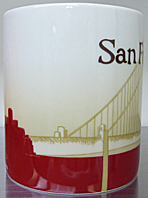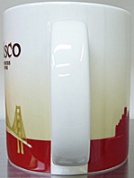 友人に買ってきてもらったサンフランシスコ限定マグ。表面はアメリカ西海岸のサンフランシスコ湾と太平洋が接続するゴールデンゲート海峡に架かる【ゴールデンゲートブリッジ】が描かれている。裏面はサンフランシスコの金融の中心地にある高層ビル群の夜景が描かれている。