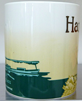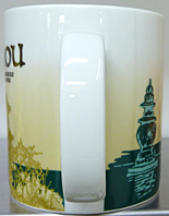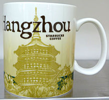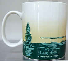 友人に買って来てもらった杭州限定マグ。表面は王様の妃の男児出産のお祝いに922年建てられたそうですが、その後何度も雷や戦火で焼失してしまい、2002年に建てられた新しい近代的な雷峰塔が描かれています。裏面は西湖の観光船と、有名な三潭印月の主景である800年前に造った石塔が描かれています。