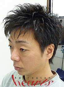 毛量がすごく多く、固い髪の方なのですが、今回は転職面接には寝かせても大丈夫で、オフの時にはきちんと立たせられた上、めちゃくちゃ軽くしたいという事で、全体に本当にゆるいボディパーマを施し、徹底的に毛束を意識して毛量調節を行います。耳周りはキッチリしているような感じを醸し出しながら、微妙なカットして何日か経ったような自然さを丁寧にカットして行きます。当店は水をつけてこのような状態がきちんとセットできる事を確認しますので安心です。