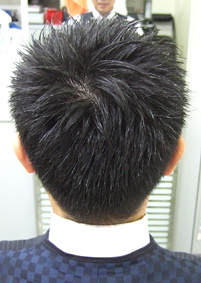 長めの坊主をより自然に柔らかく作り上げました。社会人として過激さを抑え、清潔感が漂い年齢も少し若くなるスタイル。(自毛版)