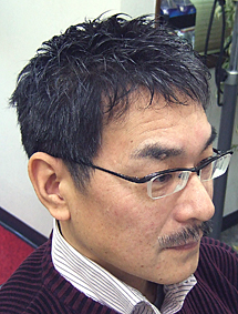 50代の方です。この年代は仕事上の立場もありますので、今風の要素の中にもそれなりの清潔感は取り入れ大人の姿勢も忘れない髪型です。